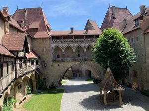De burcht wordt regelmatig gebruikt om films op te nemen. In zeker 20 films van Netflix en Hollywood figureert de burcht. Op het terras van de “burgtaverne”, bij de ophaalbrug, hebben we geluncht en van het prachtige uitzicht genoten.